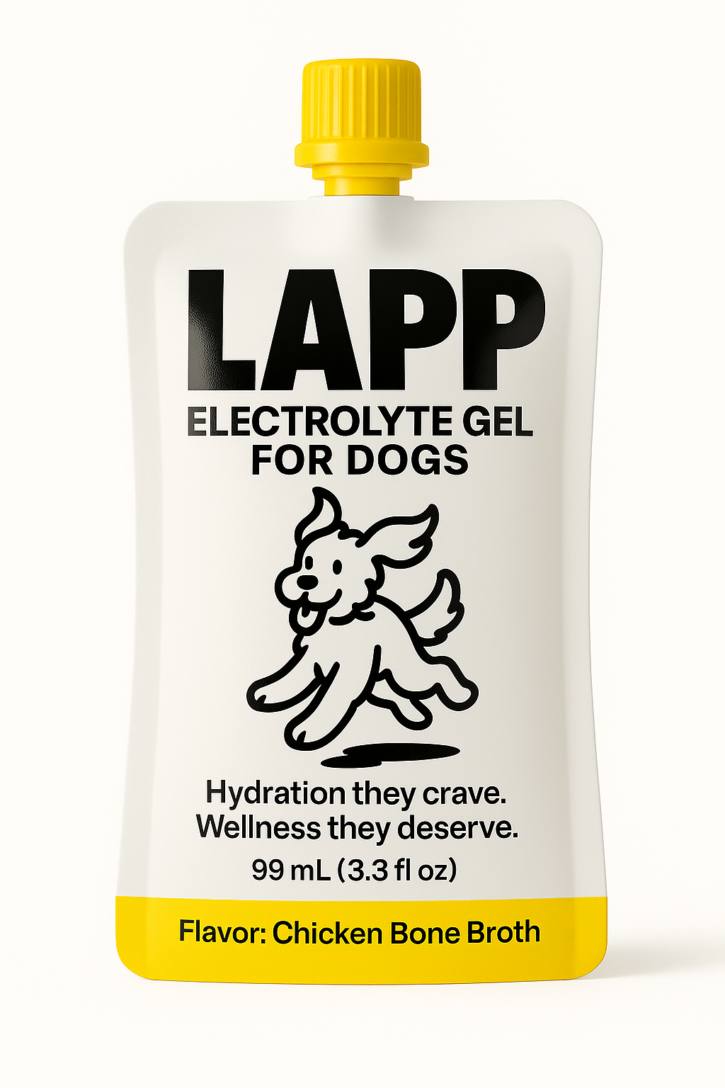 Vet-formulated electrolyte gel that re-hydrates overheated dogs 3× faster than water.
